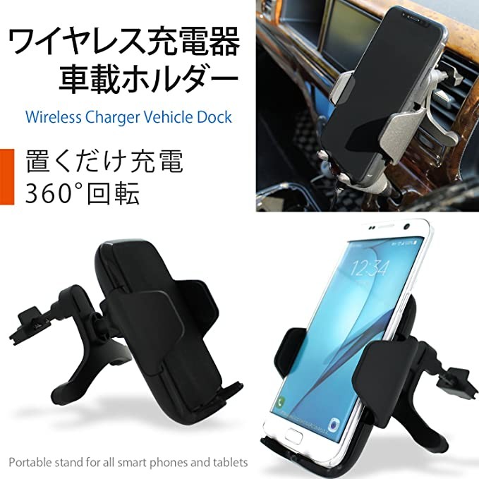 Whitenuts Smartphone Wireless Charger Car Holder comes with microUSB cable, which can be charged just by placing it Wireless Smartphone Holder Car Air Conditioner Outlet Simple installation 360 degree