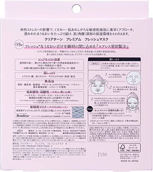 KOSE Clear Turn Premium Fresh Mask (Super Moisturizing) 3 times x 2 boxes + 1 small sample